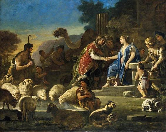 Jacob. Jacob, later given the name Israel, is regarded as a Patriarch of the Israelites and so, he is an important figure in Abrahamic religions, such as Judaism, Christianity, and Islam. Jacob first appears in the Book of Genesis, the son of Isaac and Rebecca, the grandson of Abraham, Sarah and Bethuel, the nephew of Ishmael. He was the second-born of Isaac's children, the elder being his fraternal twin brother Esau. However, by deceiving Isaac when he was old and blind, Jacob was able to usurp the blessing that belonged to Esau as the firstborn son, and become the leader of their family. Following a severe drought in his homeland Canaan, Jacob and his descendants, with the help of his son Joseph, who had since become a confidante of Pharaoh, moved to Egypt, where he died, aged 147 years, and was buried in the Cave of Machpela. Jacob is said to have had twelve sons by four women, his wives, Leah and Rachel, and his concubines, Bilhah and Zilpah, who were, in order of their birth, Reuben, Simeon, Levi, Judah, Dan, Naphtali, Gad, Asher, Issachar, Zebulun, Joseph, and Benjamin, all of whom became the heads of their own family groups, later known as the Twelve Tribes of Israel, and it is also known that he had a daughter, Dinah. It is possible he had more children than the thirteen named in the Bible, as the passages Gen. 37:35 and Gen. 46:7 both mention the existence of his sons and daughters, which could support the existence of additional children, who were unnamed in religious texts. Jacob displayed favoritism among his wives and children, preferring Rachel and her sons, Joseph and Benjamin, causing tension within the family, culminating in the sale of Joseph by his brothers into slavery. The historical origin of the name is uncertain. Yaʿqob-'el is notably recorded as a placename in a list by Thutmose III. The same name is recorded earlier still, in c. 1800 BC, in cuneiform inscriptions. The suggestion that the personal name may be shortened from this compound name, which would translate to may El protect, originates with Bright. The Septuagint renders the name, whence Latin Jacobus, English Jacob. The biblical account of the life of Jacob is found in the Book of Genesis, chapters 25-50. Jacob and his twin brother, Esau, were born to Isaac and Rebecca after 20 years of marriage, when Isaac was 60 years of age. Rebekah was uncomfortable during her pregnancy and went to inquire of God why she was suffering. She received the prophecy that twins were fighting in her womb and would continue to fight all their lives, even after they became two separate nations. The prophecy also said that the one people shall be stronger than the other people; and the elder shall serve the younger; When the time came for Rebecca to give birth, the firstborn, Esau, came out covered with red hair, as if he were wearing a hairy garment, and his heel was grasped by the hand of Jacob, the secondborn. According to Genesis 25:25, Isaac and Rebecca named the first son Hebrew, Esau. The second son they named יעקב, Jacob. The boys displayed very different natures as they matured.. and Esau was a cunning hunter, a man of the field; but Jacob was a simple man, dwelling in tents. Moreover, the attitudes of their parents toward them also differed: And Isaac loved Esau, because he did eat of his venison: but Rebecca loved Jacob. Main article: Jacob and Esau Genesis 25:29-34 tells the account of Esau selling his birthright to Jacob. This passage tells that Esau, returning famished from the fields, begged Jacob to give him some of the stew that Jacob had just made. Jacob offered to give Esau a bowl of stew in exchange for his birthright, to which Esau agreed. As Isaac aged, he became blind and was uncertain when he would die, so he decided to bestow Esau's birthright upon him. He requested that Esau go out to the fields with his weapons to kill some venison. Isaac then requested that Esau make savory meat for him out of the venison, according to the way he enjoyed it the most, so that he could eat it and bless Esau. Rebecca overheard this conversation.