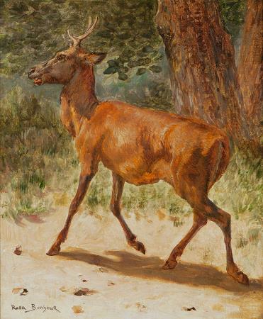 Rosa Bonheur (1822 - 1899). Rosa Bonheur, born Marie-Rosalie Bonheur, was a French artist, an animalière and sculptor, known for her artistic realism. Her best-known paintings are Ploughing in the Nivernais, first exhibited at the Paris Salon of 1848, and now at the Musée d'Orsay in Paris, and The Horse Fair, which was exhibited at the Salon of 1853 and is now in the Metropolitan Museum of Art, in New York City. Bonheur was widely considered to be the most famous female painter during the nineteenth century. Bonheur was born on 16 March 1822 in Bordeaux, Gironde, the oldest child in a family of artists. Her mother was Sophie Bonheur, a piano teacher; she died when Rosa Bonheur was eleven. Her father was Oscar-Raymond Bonheur, a landscape and portrait painter who encouraged his daughter's artistic talents. Though of Jewish origin, the Bonheur family adhered to Saint-Simonianism, a Christian-socialist sect that promoted the education of women alongside men. Bonheur's siblings included the animal painters Auguste Bonheur and Juliette Bonheur and the animal sculptor Isidore Jules Bonheur. Francis Galton used the Bonheurs as an example of Hereditary Genius in his 1869 essay of the same title. Bonheur moved to Paris in 1828 at the age of six with her mother and siblings, her father having gone ahead of them to establish a residence and income. By family accounts, she had been an unruly child and had a difficult time learning to read, though even before she could talk she would sketch for hours at a time with pencil and paper. Her mother taught her to read and write by asking her to choose and draw a different animal for each letter of the alphabet. The artist credits her love of drawing animals to these reading lessons with her mother. At school she was often disruptive, and she was expelled from numerous schools. After a failed apprenticeship with a seamstress at the age of twelve, her father undertook to train her as a painter. Her father allowed her to pursue her interest in painting animals by bringing live animals to the family's studio for studying. Following the traditional art school curriculum of the period, Bonheur began her training by copying images from drawing books and by sketching plaster models. As her training progressed, she made studies of domesticated animals, including horses, sheep, cows, goats, rabbits and other animals in the pastures on the perimeter of Paris, the open fields of Villiers near Levallois-Perret, and the still-wild Bois de Boulogne. At fourteen, she began to copy paintings at the Louvre. Among her favorite painters were Nicholas Poussin and Peter Paul Rubens, but she also copied the paintings of Paulus Potter, Frans Pourbus the Younger, Louis Léopold Robert, Salvatore Rosa and Karel Dujardin. She studied animal anatomy and osteology in the abattoirs of Paris and by dissecting animals at the École nationale vétérinaire d'Alfort, the National Veterinary Institute in Paris. There she prepared detailed studies that she later used as references for her paintings and sculptures. During this period, she befriended father-and-son comparative anatomists and zoologists, Étienne Geoffroy Saint-Hilaire and Isidore Geoffroy Saint-Hilaire. A French government commission led to Bonheur's first great success, Ploughing in the Nivernais, exhibited in 1849 and now in the Musée d'Orsay in Paris. Her most famous work, the monumental The Horse Fair, measured eight feet high by sixteen feet wide, and was completed in 1855. It depicts the horse market held in Paris, on the tree-lined boulevard de l'Hôpital, near the Pitié-Salpêtrière Hospital, which is visible in the painting's background. There is a reduced version in the National Gallery in London. This work led to international fame and recognition; that same year she traveled to Scotland and met Queen Victoria en route, who admired Bonheur's work. In Scotland, she completed sketches for later works including Highland Shepherd, completed in 1859, and A Scottish Raid, completed in 1860. These pieces depicted a way of life in the Scottish highlands that had disappeared a century earlier, and they had enormous appeal to Victorian sensibilities. Bonheur exhibited her work at the Palace of Fine Arts and The Woman's Building at the 1893 World's Columbian Exposition in Chicago, Illinois. Though she was more popular in England than in her native France, she was decorated with the French Legion of Honour by the Empress Eugénie in 1865, and was promoted to Officer of the order in 1894. She was the first female artist to be given this award. The art dealer Ernest Gambart represented her; he brought Bonheur to the United Kingdom in 1855, and he purchased the reproduction rights to her work.