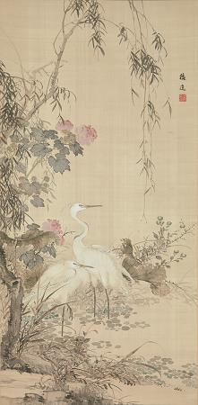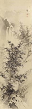 Yamamoto Baiitsu (1783 - 1856). Yamamoto Baiitsu was a Japanese painter in the Nanga style of the late Edo period. Yamamoto Baiitsu was the eldest son of a sculptor in Nagoya. He showed an early interest in painting and learned its basics - like Nakabayashi Chikuto - under Kamiya Ten'yu, a rich pawnbroker, antique connoisseur and amateur painter, by copying his works in the style of the southern song. Baiitsu was very impressed with Wang Wan's ink paintings of cherry blossoms. In 1803 Baiitsu went to Kyoto with Chikutō and further developed under Yamada Kujō and Yamamoto Rantei, also worked with Uragami Shunkin. He also studied Chinese paintings in temples in and outside of the city. In this way, he developed his own style. In 1854 he went back to Nagoya, where he was appointed official painter of the Owari clan and received samurai status. He died two years later. Baiitsu's landscapes, figures and pictures of flowers and birds impress, they are all tastefully and well designed. Baiitsu was very productive and many of his works still exist. With Chikuto he is one of the great Nanga painters in Nagoya, where he also had many students. His masterpieces include Waterfall and Bamboo Grove, in the Nagoya City Museum, a hanging scroll that is registered as an Important Art Object. Also worth mentioning is a pair of screens with the title Pine, Bamboo and Plum: these are the classic Three Friends of the Cold Season in East Asia. The work is in the Cleveland Museum of Art.
