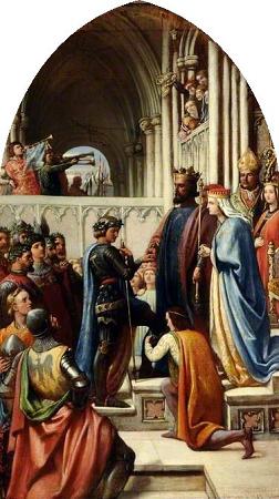 Edward, Black Prince (1330 - 1376). Edward of Woodstock, known to history as the Black Prince, was the eldest son of King Edward III of England, and thus the heir to the English throne. He died before his father and so his son, Richard II, succeeded to the throne instead. Edward nevertheless still earned distinction as one of the most successful English commanders during the Hundred Years' War, being regarded by his contemporaries as a model of chivalry and one of the greatest knights of his age. Edward was created Duke of Cornwall in 1337. He was guardian of the kingdom in his father's absence in 1338, 1340, and 1342. He was created Prince of Wales in 1343 and knighted by his father at La Hogne in 1346. In 1346 Prince Edward commanded the vanguard at the Battle of Crécy, his father intentionally leaving him to win the battle. He took part in Edward III's 1349 Calais expedition. In 1355 he was appointed the king's lieutenant in Gascony, and ordered to lead an army into Aquitaine on a chevauchée, during which he pillaged Avignonet and Castelnaudary, sacked Carcassonne, and plundered Narbonne. The next year on another chevauchée he ravaged Auvergne, Limousin, and Berry but failed to take Bourges. He offered terms of peace to King John II of France, who had outflanked him near Poitiers, but refused to surrender himself as the price of their acceptance. This led to the Battle of Poitiers where his army routed the French and took King John prisoner. The year after Poitiers, Edward returned to England. In 1360 he negotiated the treaty of Bretigny. He was created Prince of Aquitaine and Gascony in 1362, but his suzerainty was not recognised by the lord of Albret or other Gascon nobles. He was directed by his father to forbid the marauding raids of the English and Gascon free companies in 1364. He entered into an agreement with Don Pedro of Castile and Charles II of Navarre, by which Pedro covenanted to mortgage Castro de Urdiales and the province of Biscay to him as security for a loan; in 1366 a passage was thus secured through Navarre. In 1367 he received a letter of defiance from Henry of Trastámara, Don Pedro's half-brother and rival. The same year, after an obstinate conflict, he defeated Henry at the Battle of Nájera. However, after a wait of several months, during which he failed to obtain either the province of Biscay or liquidation of the debt from Don Pedro, he returned to Aquitaine. Prince Edward persuaded the estates of Aquitaine to allow him a hearth tax of ten sous for five years in 1368, thereby alienating the lord of Albret and other nobles. Drawn into open war with Charles V of France in 1369, he took Limoges, where in 1370 he gave orders for an indiscriminate massacre in revenge for the voluntary surrender of that town to the French by its bishop, who had been his private friend. Prince Edward returned to England in 1371 and the next year resigned the principality of Aquitaine and Gascony. He led the commons in their attack upon the Lancastrian administration in 1376. He died in 1376 of dysentery and was buried in Canterbury Cathedral, where his surcoat, helmet, shield, and gauntlets are still preserved. Edward, the eldest son of Edward III and Queen Philippa, was born at Woodstock on 15 June 1330. His father on 10 September allowed five hundred marks a year from the profits of the county of Chester for his maintenance; and on 25 February 1331, the whole of these profits were assigned to the queen for maintaining him and the king's sister Eleanor. In July of that year the king proposed to marry him to a daughter of Philip VI of France. On 18 March 1333, Edward was invested with the earldom and county of Chester, and in the parliament of 9 February 1337 he was created Duke of Cornwall and received the duchy by charter dated 17 March. This is the earliest instance of the creation of a duke in England. By the terms of the charter the duchy was to be held by him and the eldest sons of kings of England. His tutor was Dr. Walter Burley of Merton College, Oxford. His revenues were placed at the disposal of his mother in March 1334 for the expenses she incurred in bringing up him and his two sisters, Isabella and Joan. Rumours of an impending French invasion led the king in August 1335 to order that he and his household should remove to Nottingham Castle as a place of safety. When two cardinals came to England at the end of 1337 to make peace between Edward III and Philip VI, the Duke of Cornwall is said to have met the cardinals outside the City of London, and in company with many nobles to have conducted them to the King Edward.