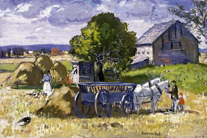 Reynolds Beal (1855 - 1951). Reynolds Beal was an American Impressionist and Modernist artist. The elder brother of painter Gifford Beal, Reynolds was born in New York City. He and his brother Gifford spent their summers at Wilellyn in Newburgh, New York, on the Hudson River, and together they would later design the gardens at Wilellyn. His father was William Reynolds Beal, whose brother Thaddeus owned Echo Lawn, not far away. Beal was a man of independent means, and was thus able to devote his life to his art without having always to appeal to the tastes of his patrons or to contemporary trends. Beal showed artistic ability from an early age, but temporarily postponed his creative interests to enroll at university. He first studied at Cornell University, where he was a member of the Phi Kappa Psi fraternity and the Irving Literary Society. Beal painted and sketched in and around Cayuga Lake. His home haunts of the East River were the first subjects of his work; in Sibley Hall's drafting bays he learned further technique as a budding naval architect. Although the Sibley time constitutes his first artistic experience, it was not until the years following graduation that Beal became serious about a painting career. Beal spent 1901 at sea, and worked up his sketchbook entitled Cruising Aboard U.S.S. School Ship St. Mary's, he kept scrapbook pages of marine etchings and photographs, old Christmas cards, personal photographs, exhibition catalogs, and clippings. From 1900 to 1907, he painted almost exclusively at the artist's community in Noank, Connecticut with Henry Ward Ranger. After 1912, Beal focused more on the Hudson Valley, where he painted the colorful and whimsical scenes of the traveling circuses that came through the region. His most prolific artistic period falls between the years 1910-1920. Beal painted the beaches in Provincetown, Key West, Rockport, Atlantic City and Wellfleet, circus scenes and carnivals. He used a variety of styles including Impressionism and Tonalism. As he got older, his work became more complex and vibrant. In addition to oils, he was admired as a watercolorist, and he and Gifford made Rockport, Massachusetts their home. At one time, he resided in Gloucester, Massachusetts, as well. His studio overlooked Rockport's Inner Harbor, from where he drew and etched many harbor scenes. Beal traveled widely. In November 1944, Reynolds and Gifford had a large joint exhibition at the Fitchburg Art Center in Fitchburg, MA, which included eighty-three oils, watercolors, and etchings that had been executed all over the world with subjects including Singapore, Trinidad, Samoa, China, Nassau, Egypt, Haiti, Cape Ann, Atlantic City, and Provincetown. Beal was active in the art community. By 1934, he was a participant in the Salmagundi Club, Lotus Club, Century Club, National Academy of Design and the American Water Color Society. He was also a member of the Society of American Engravers, the Society of American Graphic Artists and the National Arts Council. His progressive tenets marked him as a modernist, and he helped found the Society of Independent Artists and the New Society of Artists, which consisted of fifty of the most important painters of the day, including George Bellows, Childe Hassam, John Sloan, William Glackens and Maurice Prendergast. His work was also part of the painting event in the art competition at the 1932 Summer Olympics. Illness prevented Beal from painting in oil as spontaneously as he would have liked, and by 1940 he almost stopped painting. Reynolds Beal died in Rockport, Massachusetts, in 1951. One curator summarized his life of excellence in a note tagged to his Eddyville paintings: Reynolds Beal helped drive American impressionism as the 20th century got underway. Like Lever and Lawson, he favored the Fauvistic direction, with its strong link to the radical childlike innocence of the American land.