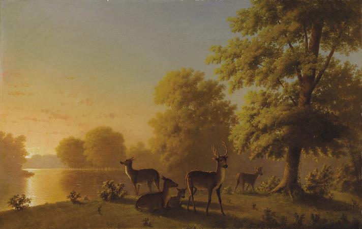 Arthur Fitzwilliam Tait (1819 - 1905). Arthur Fitzwilliam Tait was a British-American artist who is known mostly for his paintings of wildlife. During most of his career, he was associated with the New York City art scene. Americans arguing politics in 1854 while ignoring the farm chores. Rabbits on a Log, Arthur Fitzwilliam Tait, Metropolitan Museum of Art Tait was born in Livesey Hall near Liverpool, England. At eight years old, because his father went bankrupt he was sent to live with relatives in Lancaster. It is during that time that he became attached to animals. Later on, in Manchester, England, Agnew & Zanetti Repository of Art acquired Arthur Tait who began self-learning to paint, as a twelve-year-old boy. His work consisted mostly of reproduced lithography that were exposed for Agnew's exhibitions. In 1838, he left the Agnew lithography reproduction business to marry. Life on the Prairie, The Buffalo Hunt, Arthur Fitzwilliam Tait, lithograph by Currier & Ives, 1862 During the period 1845-1848 he produced a number of lithographs of railway subjects with a particular focus on landscapes showing Lancashire and Yorkshire lines. During the late 1840s he became aware of the Americas while attending a George Catlin exhibition in Paris. He immigrated to the United States in 1850, where he established a small painting camp in the Adirondacks to paint during summer. Starting in 1852, Currier & Ives reproduced lithographs of his works to publicize him. What also promoted his talent was exhibitions held at the National Academy of Design, New York during the late 19th century showing more than 200 paintings of his. In 1858 he was elected to full membership of the Academy. Tait's The Reprimand, at the Brooklyn Museum in New York City shows a rural girl warning a deer. He was identified with the art life of New York until his death at Yonkers, New York in 1905. He painted barnyard fowl and wild birds as well as sheep and deer, with great dexterity, and reproductions of his minute panels of chickens had an enormous vogue. In 2006, Tait's painting Good Hunting Ground: The Home of the Deer was auctioned for $167,300.
