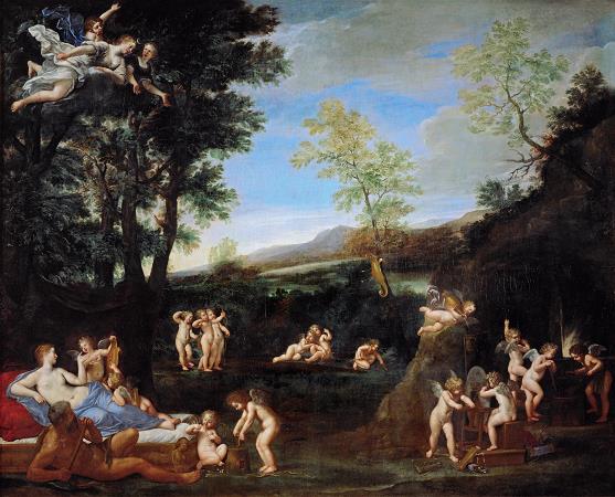 Francesco Albani (1578 - 1660). Francesco Albani or Albano was an Italian Baroque painter who was active in Bologna, Rome, Bologna, Viterbo, Bologna, Rome, Bologna, Mantova, Roma and Florence. Albani was born in Bologna, Italy in 1578. His father was a silk merchant who intended him to go into his own trade. By the age of twelve, however, he had become an apprentice to the competent mannerist painter Denis Calvaert, in whose studio of he met Guido Reni. He soon followed Reni to the so-called Academy run by Annibale, Agostino, and Ludovico Carracci. This studio fostered the careers of many painters of the Bolognese school, including Domenichino, Massari, Viola, Lanfranco, Giovanni Francesco Grimaldi, Pietro Faccini, Remigio Cantagallina, and Reni. In 1600, Albani moved to Rome to work on the fresco decoration of the gallery of the Palazzo Farnese, which was being completed by the studio of Annibale Carracci. At this time, Rome, under Clement VIII Aldobrandini was exhibiting some degree of administrative stability and renewed artistic patronage. While Pope Clement had been born into a Florentine family resident in Urbino, his family was allied by marriage to the Emilia-Romagna and the Farnese, since Ranuccio I Farnese, Duke of Parma had married Margherita Aldobrandini. Parma, like Bologna, being part of the Region of Emilia-Romagna, it was not surprising that Cardinal Odoardo Farnese, Ranuccio's brother, chose to patronise the Carraccis from Bologna, thereby establishing Bolognese dominance of Roman fresco painting for nearly two decades. Albani became one of Annibale's most prominent apprentices. Using Annibale's designs and assisted by Lanfranco and Sisto Badalocchio, Albani completed frescoes for the San Diego Chapel in San Giacomo degli Spagnoli between 1602 and 1607. In 1606-7, Albani completed the frescoes in the Palazzo Mattei di Giove in Rome. He later completed two other frescoes in the same palace, also on the theme of Life of Joseph. In 1609, he completed the ceiling of a large hall with Fall of Phaeton and Council of the Gods for the Palazzo Giustiniani at Bassano Romano. This work was commissioned by Vincenzo Giustiniani, also famous as a patron of Caravaggio. During 1612-14, Albani completed the Choir frescoes at the church of Santa Maria della Pace which had just been remodelled by Pietro da Cortona. In 1616 he painted ceiling frescoes of Apollo and the Seasons at Palazzo Verospi in Via del Corso for the cardinal Fabrizio Verospi. In his later years, Albani developed a mutual, though respectful, rivalry with the more successful Guido Reni, who was also heavily patronized by the Aldobrandini, and under whom Albani had worked under at the chapel of the Palazzo del Quirinale. Albani's best frescoes are those on mythological subjects. Among the best of his sacred subjects are a St Sebastian and an Assumption of the Virgin, both in the church of San Sebastiano fuori le Mura in Rome. He was among the Italian painters to devote himself to painting cabinet pictures. His mythological subjects include The Sleeping Venus, Diana in the Bath, Danae Reclining, Galatea on the Sea, and Europa on the Bull. A rare etching, the Death of Dido, is attributed to him. Carlo Cignani, Andrea Sacchi, Francesco Mola, and Giovanni Francesco Grimaldi were among his students. Following the death of his wife he returned to Bologna, where he married a second time and lived until his death. Albani never acquired the monumentality or tenebrism that was quaking the contemporary world of painters, and is often derided often for his lyric, cherubim-filled sweetness, which often has not yet shaken the mannerist elegance. While Albani's thematic would have appealed to Poussin, he lacked the Frenchman's muscular drama. His style sometimes seems to have more in common with the decorative Rococo than with the painting of his own time. Among his pupils were his brother Giovanni Battista Albani, and others including Giacinto Bellini, Girolamo Bonini, Giacinto Campagna, Antonio Catalani, Carlo Cignani, Giovanni Maria Galli, Filippo Menzani, Bartolommeo Morelli, Andrea Sacchi, Andrea Sghizzi, Giovanni Battista Speranza, Antonio Maria del Sole, Emilio Taruffi, and Francesco Vaccaro.
